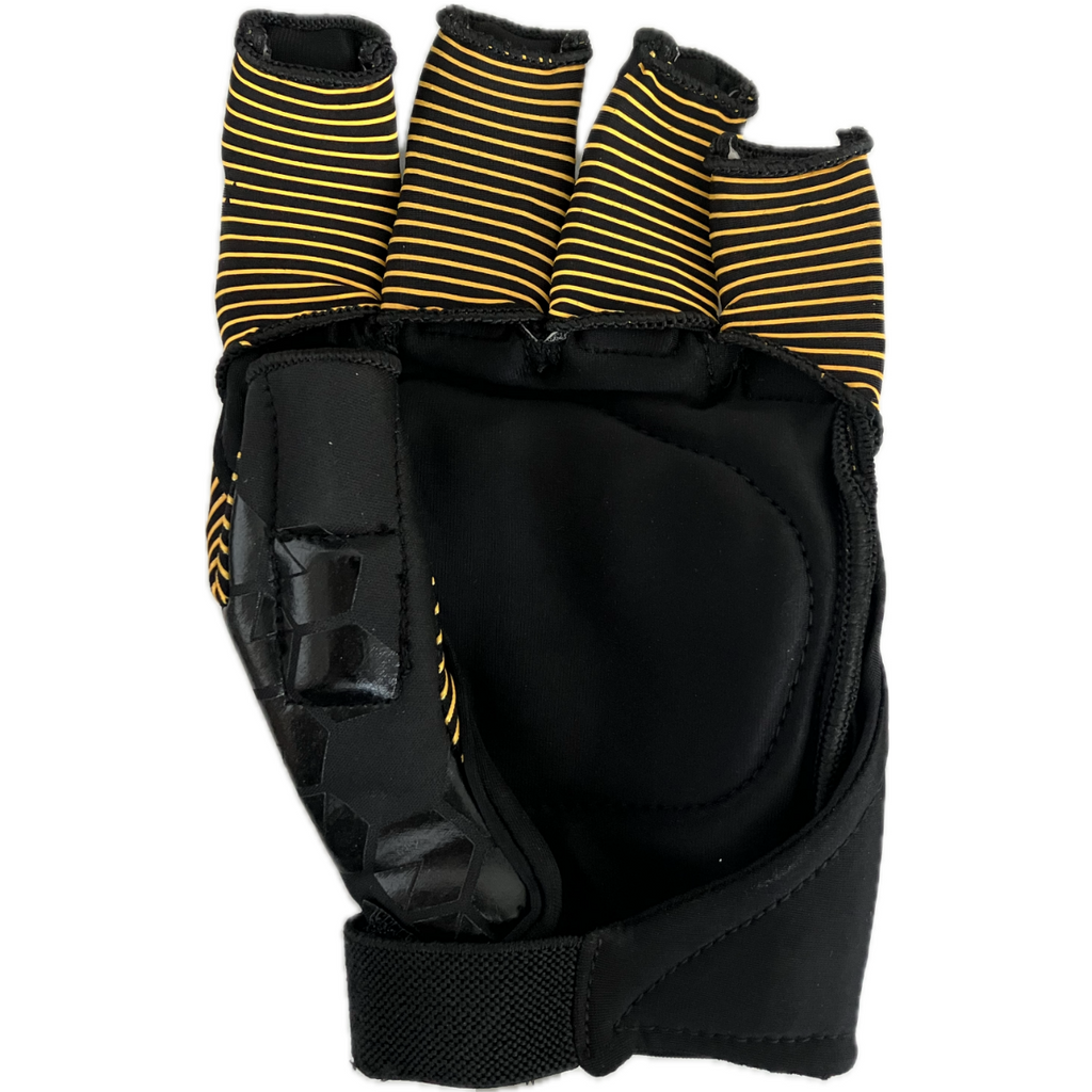 Binnenkant van de handschoen is met foam gepolsterd en de bovenkant, duim en vingers hebben een kunststof "schaal".
