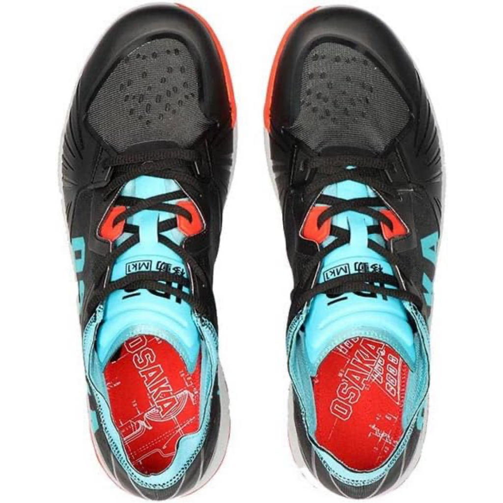 De Osaka IDO MK1 in Analogue Black/Aqua Blue is de ideale schoen voor hockey, padel of training. Kies op basis van je eerdere ervaringen met schoenen, maar over het algemeen geldt dat meisjes/dames de slanke variant dragen en jongens/heren de standaard IDO.