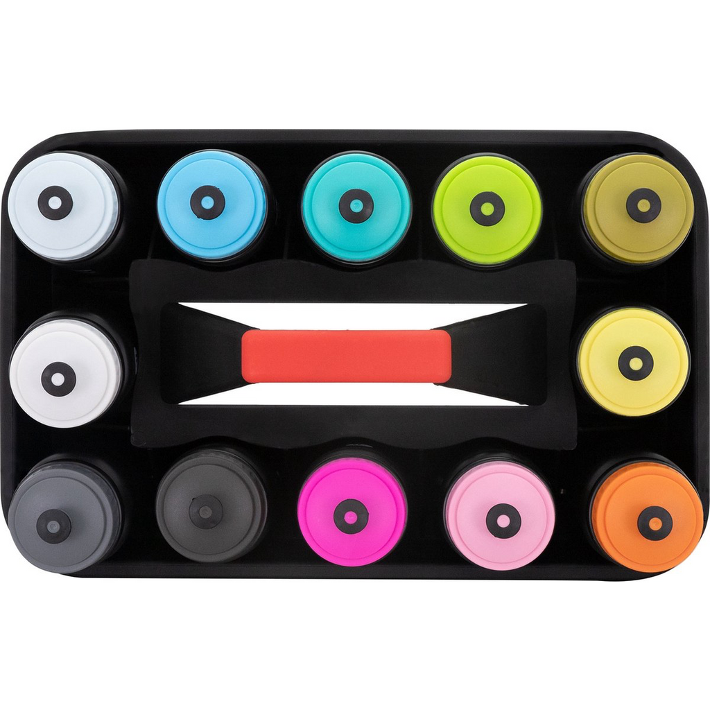 Inclusief 12 bidons, 550 ml, in diverse kleuren.